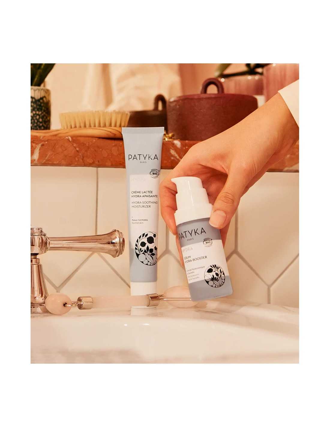 El Sérum Hydra Booster combina Agua del glaciar del Mont Blanc altamente saciante con un dúo de activos higroscópicos para una hidratación intensa y multinivel: el Ácido Hialurónico Puro y Vegetal de alto peso molecular y un extracto de Tremella, seta asiática con propiedades hidratantes y filmógenas excepcionales que mantienen el agua en las células.